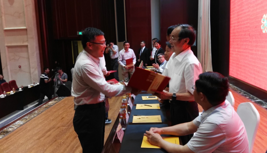 主席臺就坐領導為獲獎者頒獎(2