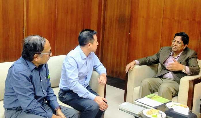 ??? 會見伊始,拉扎克部長對荃銀高科一行來訪表示熱烈歡迎,在聽取了荃銀高科過去十多年間在孟加拉推廣雜交水稻與優質蔬菜等農作物良種、開展本土化品種選育和種子生產情況匯報后,給予高度贊賞與肯定。拉扎克部長介紹了孟加拉糧食生產及農業現狀,農業部當前鼓勵農民以非傳統種植代替過去的傳統作物種植,以獲得更高經濟效益。他建議,荃銀高科作為中國知名種業高科技企業,對亟待加強的孟加拉食品加工業進行投資,該國農業部將在企業用地、擴大規模方面給予支持,提供保障。他表示,將對荃銀高科與孟加拉農業部農業發展公司在雨季水稻新品種選育及種子生產領域方面的合作給予積極支持。